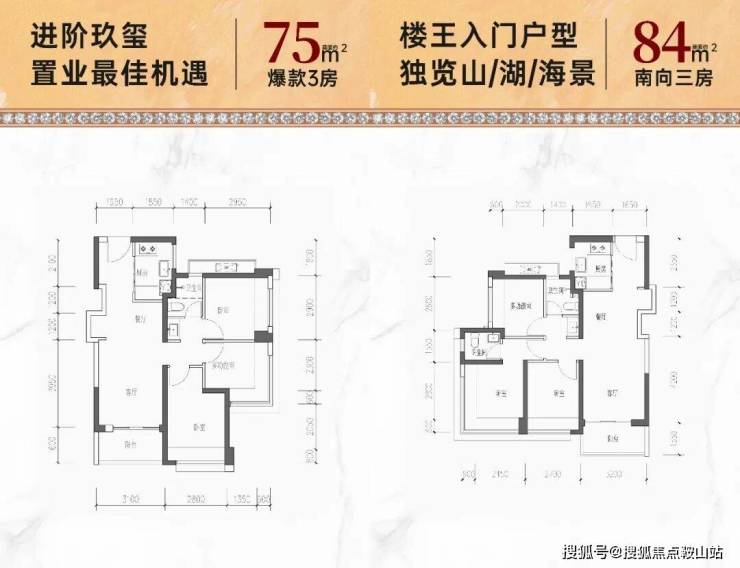 约84㎡南向三房两卫:折后单价4.27-4.56万/㎡,总价359-383万