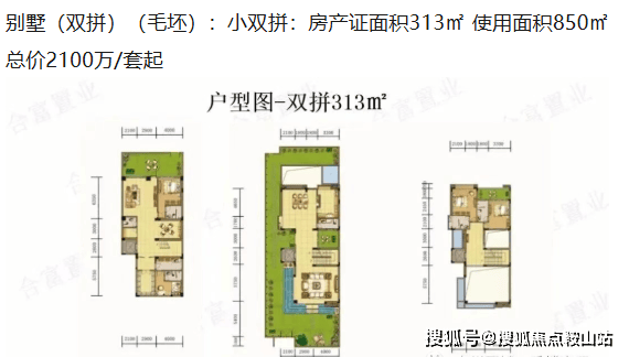 双拼产权313方,6房3厅,室内室外拥有超大的活动空间,首层7.5米挑高中空客厅,高端大气上档次。