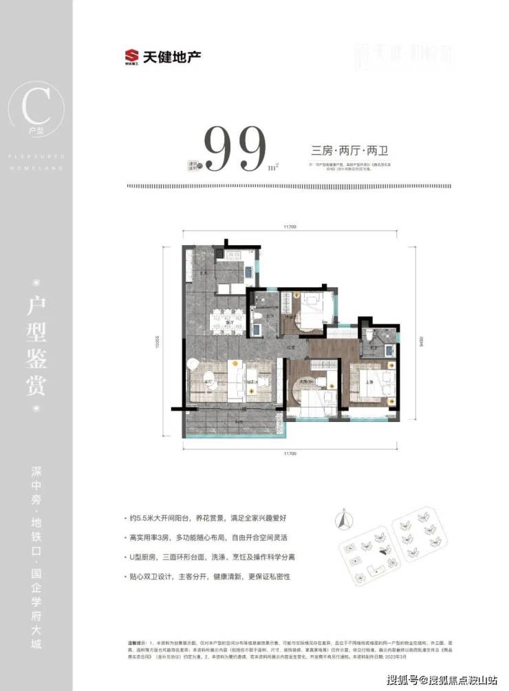 99㎡的3房2厅2卫,折后总价约320-330万,单价约3.2-3.4万/㎡。