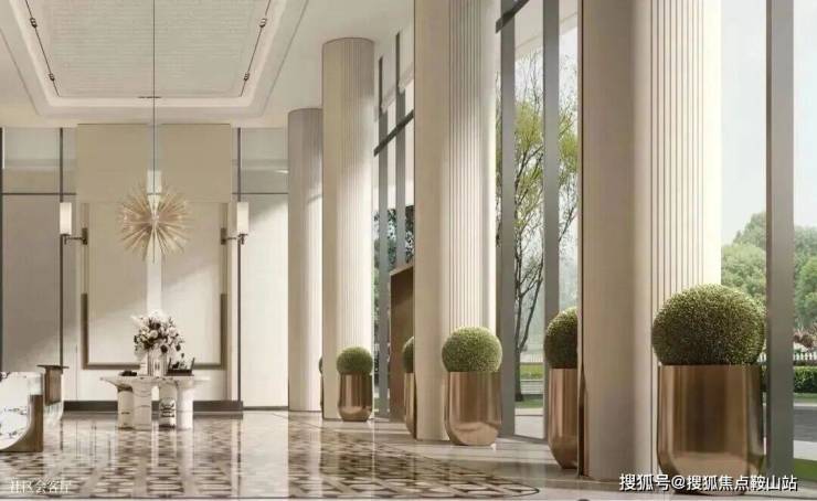 尊崇高定大堂,精研艺术与生活交融之美,雕琢金属与石材材质的自然奢华,营造艺术感的归家体验,遇鉴居者精奢高雅的审美。