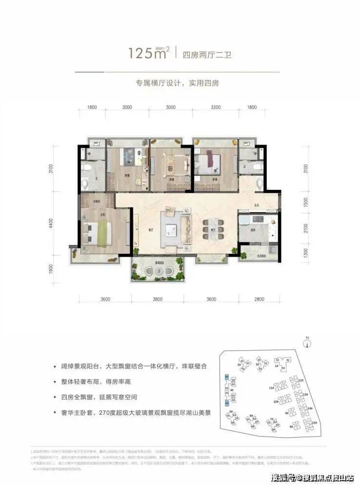 超阔绰一体化横厅,彰显荣耀人生。双套房配置,四房顶尖之作。