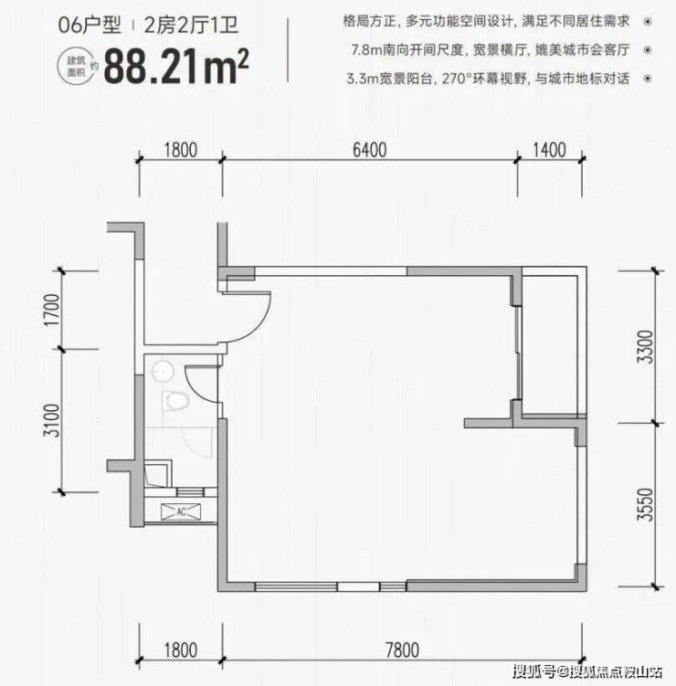 户型布局方正典雅,彰显格调生活。明厨明卫设计,带阳台望城市山林。