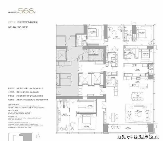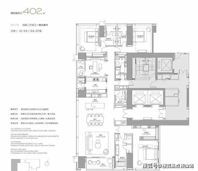 主力户型:303㎡、327㎡、404㎡、568㎡等大平层,最大户型达1032㎡