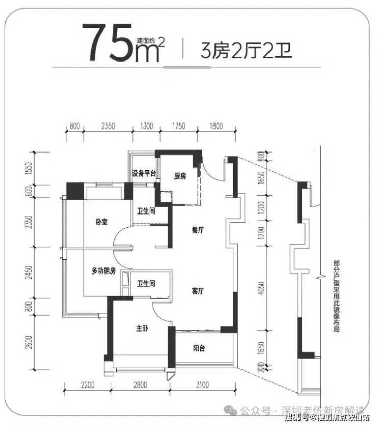 ● 75平3房2厅2卫:真正的同等面积多一间房,还多一间卫生间!
