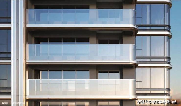 公建立面:公建化曲线流体设计、无柱转角弧形窗、铝板全景玻璃光幕,270°环幕视野媲美鹏瑞一号。