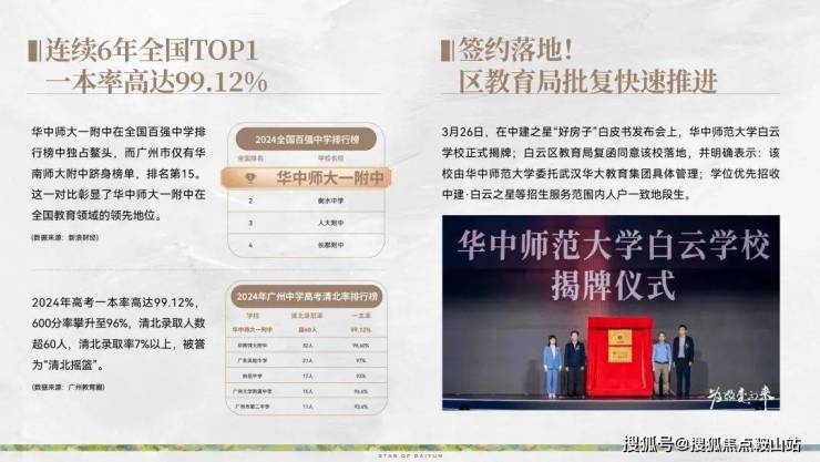 名校在侧:引入九年一贯制公办【华中师范大学白云学校】(已签约,预计2026年小学开学),占地约60亩,总建筑面积约4万㎡,规划96班。