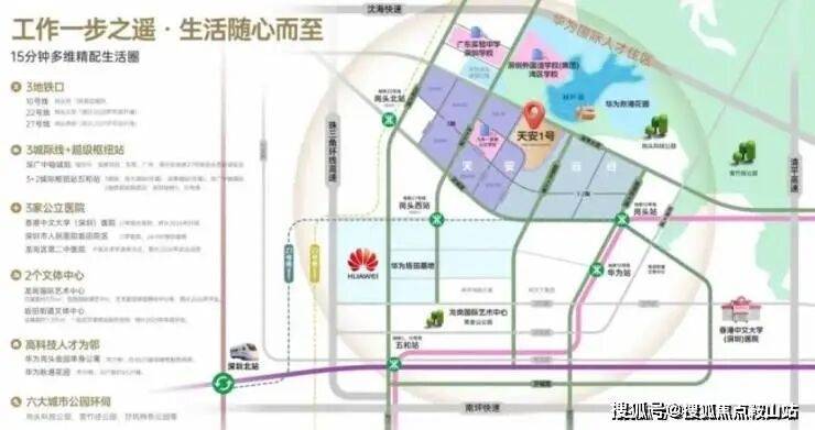 天安云谷三期,位于深圳市龙岗区坂田街道北部核心地段,西临五和大道,北接坂李大道(布澜大道),南靠雪岗北路,东邻坂雪岗大道。项目地处"坂雪岗科技城"与"龙岗数字创意产业走廊"双核交汇处,毗邻华为总部基地(直线距离约1.2公里),是深圳科技创新走廊的重要节点。区域规划定位为世界级新一代信息技术产业集群核心承载区,未来将形成3万+高新人才集聚区,区域人口规模预计达28-40万。