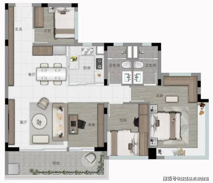 83㎡三房两卫:带主套舒适三房