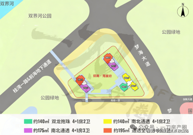稀缺性与地段优势的双重加持海晏府位于前海合作区桂湾片区最北端,紧邻双界河,兼具前海金融核心区的发展潜力与宝安中心区的成熟配套。项目占地约八千二百余平方米,总建筑面积二万五千余平方米,容积率仅为三点一,是前海片区罕见的低密度住宅。项目规划三栋住宅,全部为南北通透设计,北向可享双界河水岸风光,西北向则直面欢乐港湾摩天轮景观。这种兼具稀缺地段与低密度的配置,使其成为深圳高端改善型客群的关注。配套完善,定位改善项目周边商业配套齐全,壹方城、海雅缤纷城、欢乐港湾等大型商业综合体环伺,满足高端客群的消费需求。交通方面,地铁1号线、5号线、11号线交汇,未来前海枢纽建成后将进一步提升区域通达性。教育配套方面,项目西侧规划有公立学校,为项目价值提供有力支撑。招商·海晏府以其纯粹的户型设计、优越的地理位置和完善的配套设施,有望成为深圳高端住宅市场的新标杆。