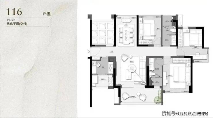 面积:86㎡3房1卫,109-118㎡4房2卫,136-137㎡4+1房2卫176-5房2卫