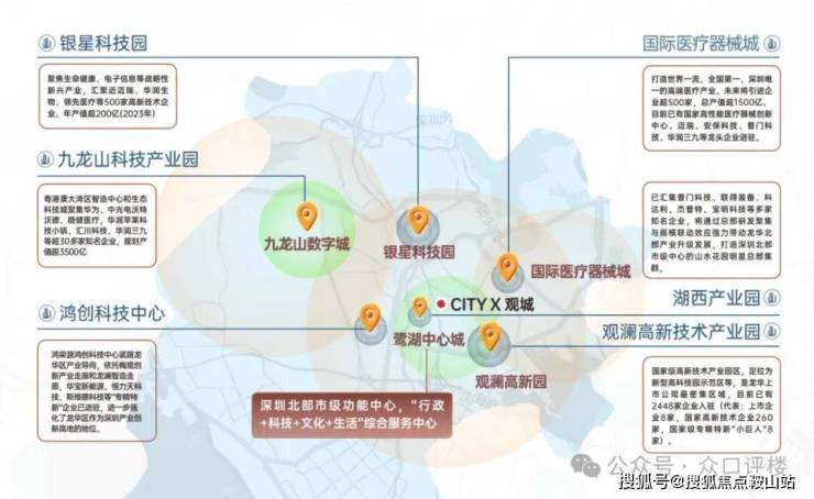 观澜占据龙华70%产业,鹭湖中心城与九龙山数字城双核驱动,聚焦人工智能、生物医疗等高新技术产业;