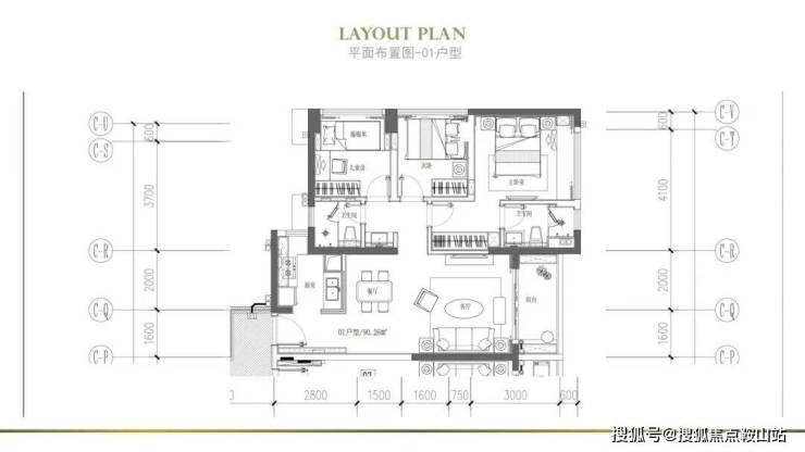 在售面积:85-90㎡(3房2厅1-2卫)