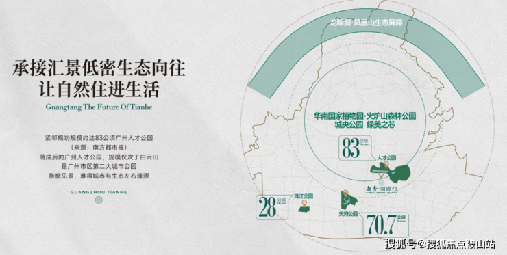 紧邻规划规模约达83公顷广州人才公园,落成后的广州人才公园,规模仅次于白云山,是广州市区第二大城市公园,推窗见景。2.1低容积率,天河再难有的低密净地