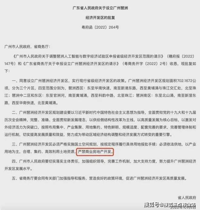 广州琶洲经济开发区正式获批,《批复》申明琶洲西区严禁商业房地产开发!