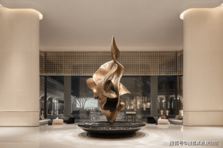 二进院“水境回廊”,将令人惊叹的“文化浓度”融于空间。六扇瑞兽纹墙以岭南剪纸工艺呈现,象征“六合天地”;两吨重约7.5米高鎏金铜门,由非遗大师朱炳仁锻造。