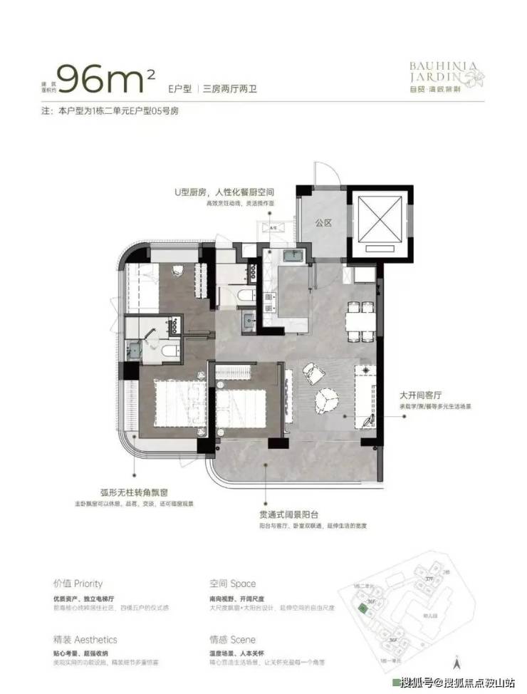 小区有485套纯住宅,车位595个,容积率5.14,共有三栋住宅,每栋做了36-37F高的4梯5户设计,每户都有专梯入户空间。