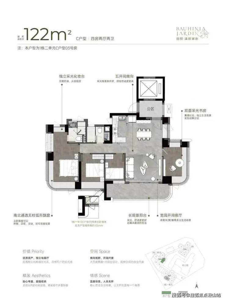 产品力突出,主力户型96-142㎡三至四房,得房率高达92%-100%,全南向布局搭配270°无柱飘窗,4梯5户配置加独立电梯厅,私密性与仪式感拉满。精装交付兼顾细节与实用,社区配套完善,周边全龄优教、顶奢商圈与生态公园环绕,成为前海刚需首置与改善优选标杆。
