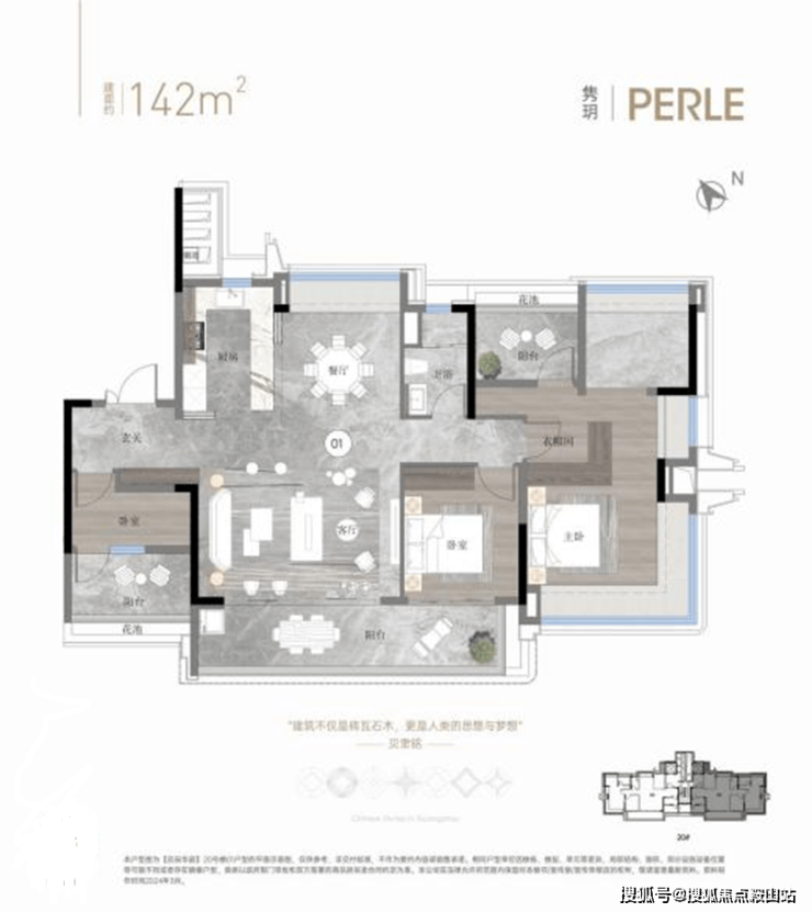 其中20#、21#的142平延续了一期的经典格局和品质,在飘窗采光面、空间尺度等细节之处做了迭新升级,打造板式楼栋设计,独梯独户的豪宅私密性,并加强了三面采光、实现了餐客厅、主卧的南北对流。