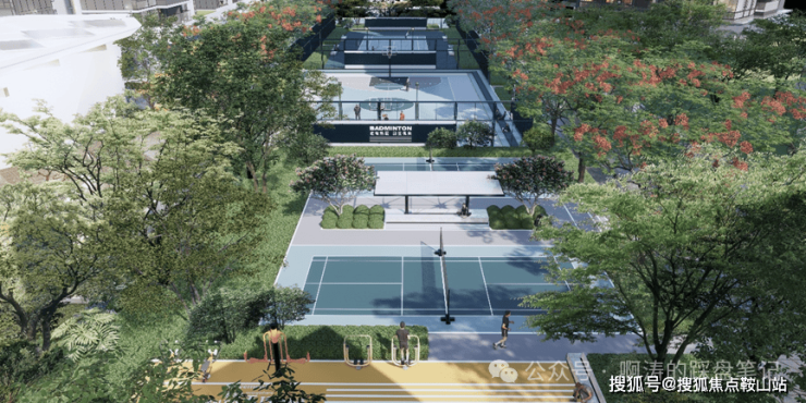 中央体育公园,配置羽毛球场、篮球场、网球场等运动设施,构建现代化、全龄化、活力化的中轴运动公园。