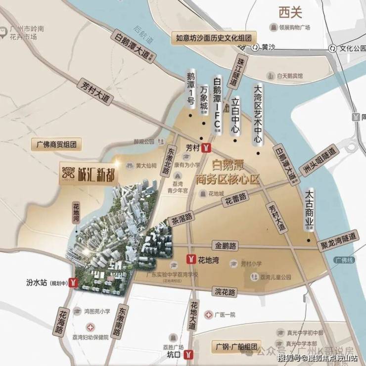 诚汇新都位于白鹅潭商务区核心区,涵盖35个地块,占地约54万㎡