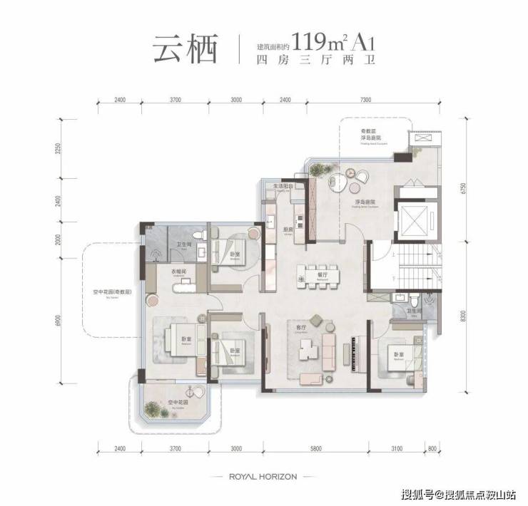 还有建面约179㎡,为4房3厅4卫设计,尺度奢华无比!