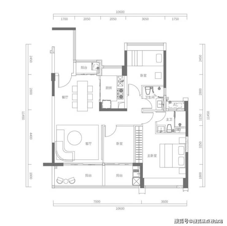 B户型建面约117㎡,3房2厅2卫