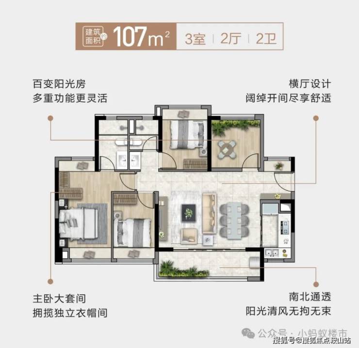 2. 107-120㎡3+1房:一步到位的性价比之王