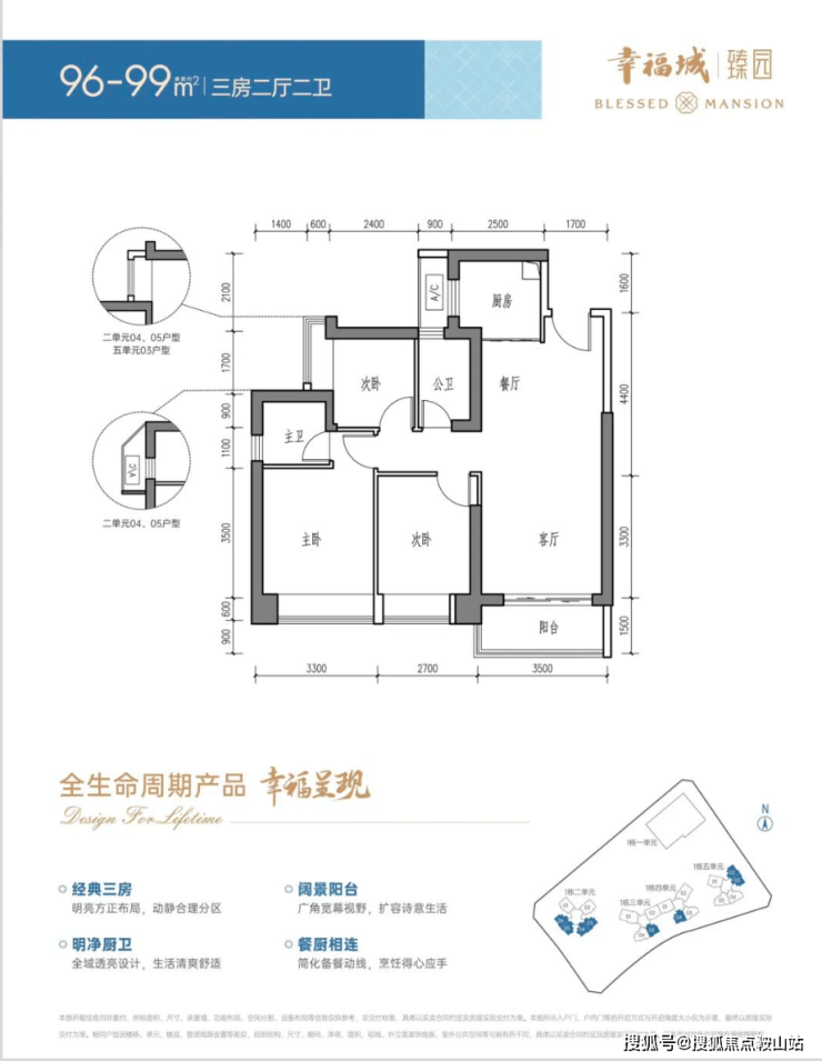 约96-99㎡三房两厅两卫(竖厅),折后:约490-590万