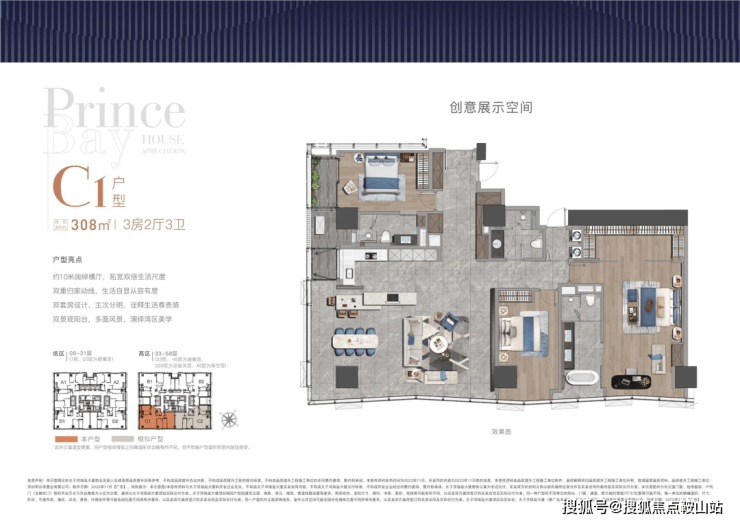 空中花园:6层、46层共打造场地面积约2000㎡泛会所,打造多元第三生活空间,在空中海湾俱乐部延展生活品味。