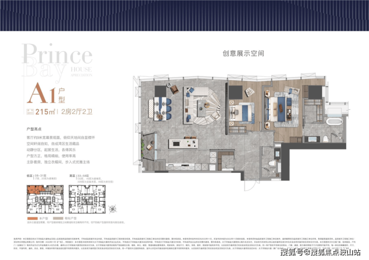 塔楼布局以垂直分割为两个主要区域,可分别通过私人专属电梯到达,并直达共享空中花园和设施。高低区都设有两卧至三卧户型,而复式单位则位于塔楼最高处