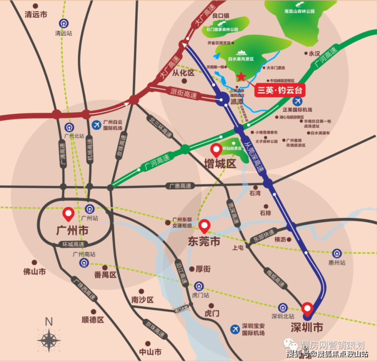 1、广州—京港澳高速—大广高速—派潭大道北—三英温泉度假酒店。