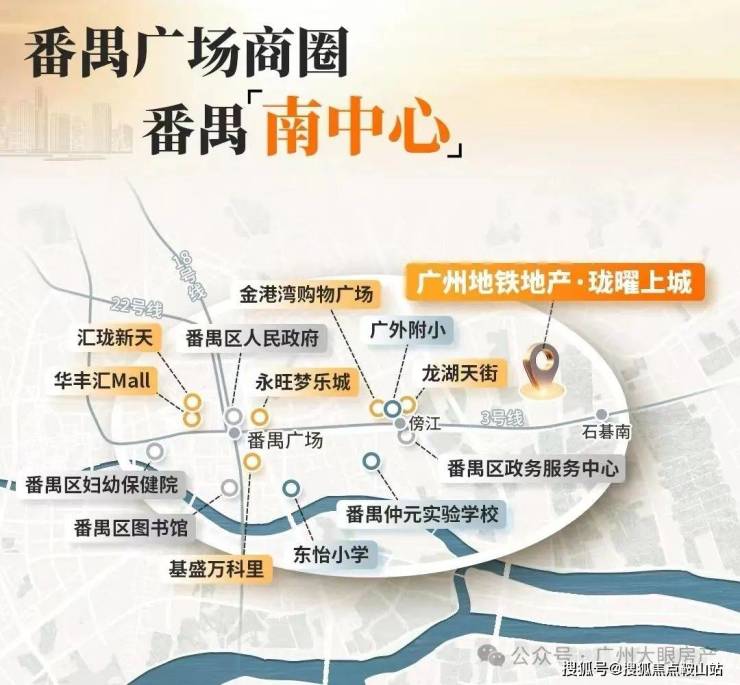 依托3号线半小时共享广州黄金三角CBD+万博CBD+南沙CBD商圈配套;商圈金脉之上,串联万亿CBD及繁华都市商圈。