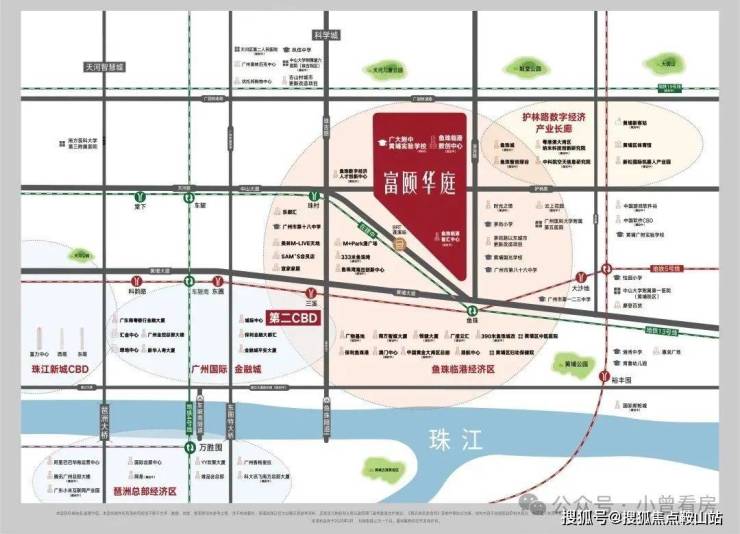 富颐华庭(富颐都荟)所在的鱼珠片区,拥有粤港澳大湾区科技金融创新中心(约300米)、广建·鱼珠湾(约330米)、鱼珠旧城改造规划地标(约390米)以及茅岗路以东旧改(约300米)等多座300米以上的地标建筑,共同撑起了独特的CBD天际线。此外,与项目仅一路之隔的中国软件CBD,一期已投入运营,未来将引进超800家企业,吸引超4万人就业,带动上下游企业达成产值1000亿,贡献税收10亿以上。