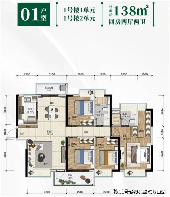 项目涵盖洋房、商办、商业等多种物业类型,其中洋房产品为建筑面积约97-138㎡三至四房,2梯4户布局,户户朝南,私密性更足,公共空间采光、通风更好;