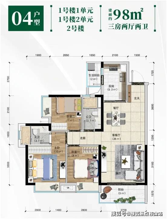 【建筑面积约98㎡户型】