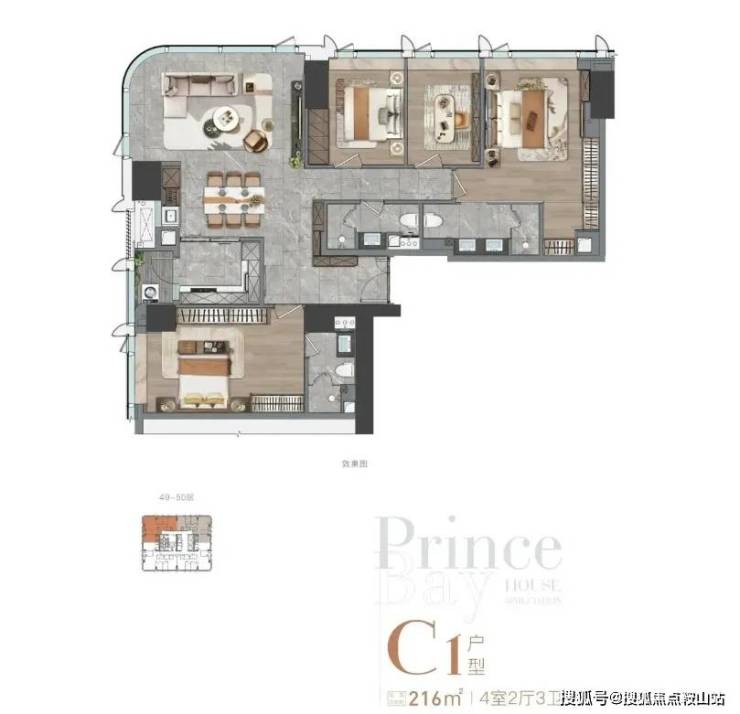 大尺度空间 纵享环幕视野大平面大尺度定位,层高约3.6米,横厅设计确保最大化观景面全户型纵享环幕视野。项目打造主力建面约215-415㎡纯粹品质公寓共191席,顶层为建面约1270㎡公寓产品。