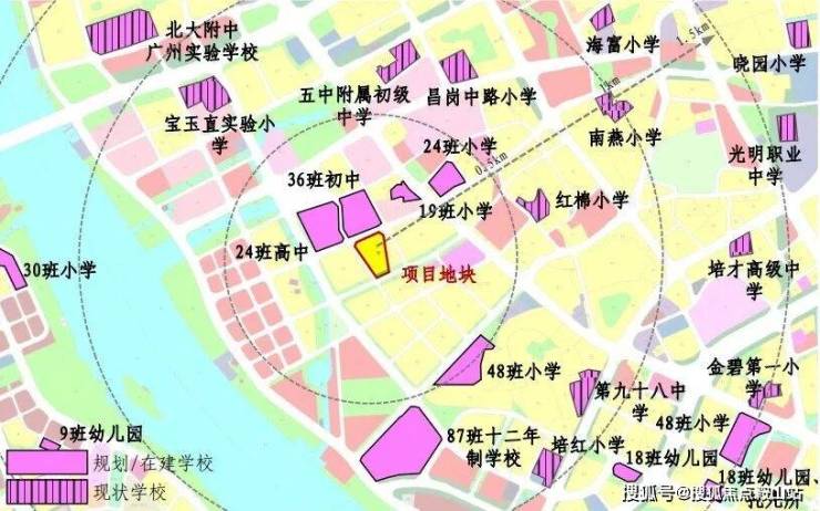 项目自身没有配建学校,但周边名校环伺,3km直线范围内包含广州市五中附属初级中学(省级)、广州市第41中学(省级)、宝玉直实验小学(光大校区)、江南外国语学校、工业大道中小学、红棉小学、海富小学、南燕小学、培红小学等9所学校环伺,拥有完善的区域教育体系。