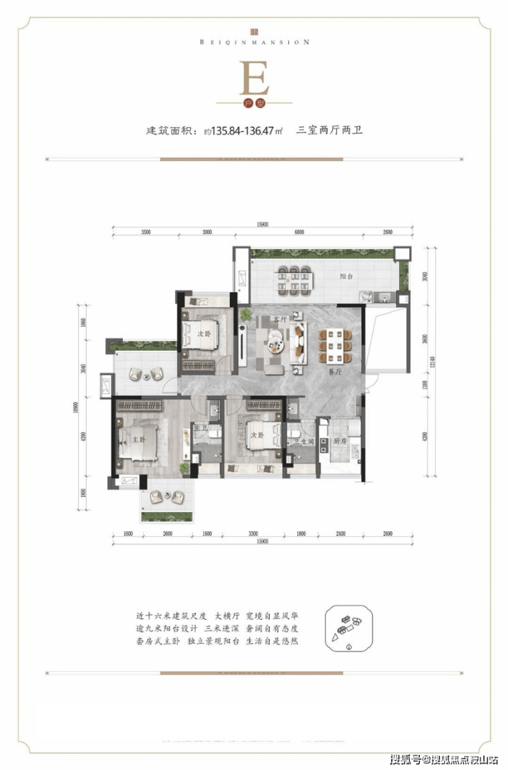主力户型逾16米建筑面宽,府藏奢阔天地;约4.2-6.8米横厅设计,逾9米观景阳台,于热带山海之间,体验生活悠然;