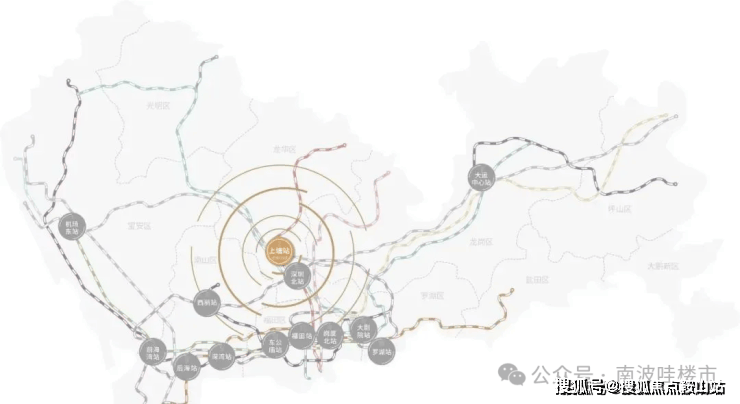深圳都会枢纽的1/13 ,三地铁线交汇(含在建)