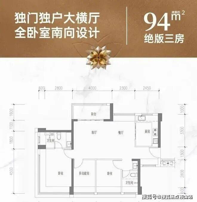 约94㎡三房两卫 | 奢阔横厅范本【折后单价约4.45-4.64万,折后总价约420-438万】(仅限开盘当天)• 独门独户,方正横厅,南北通透,对望泳池;• 空间感远超新规,曾经开盘即售罄,珈誉大城最后43套,绝版!