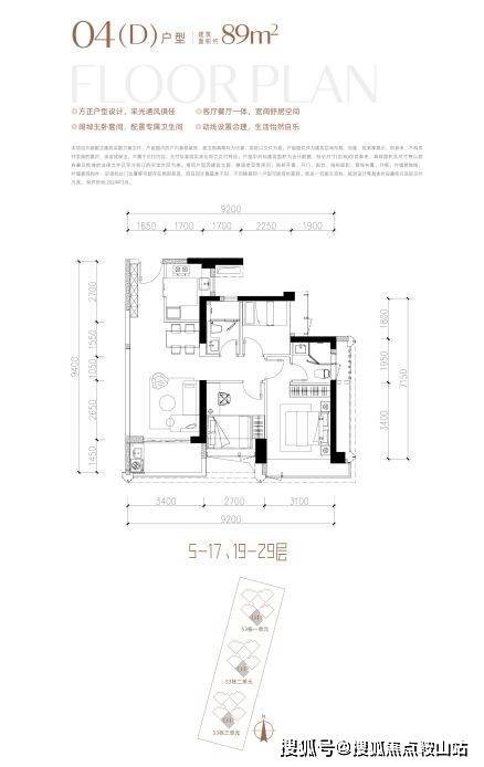 约89㎡3房2厅2卫,户型方正呈竖厅布置,结构上客餐厅一体、动静分区。设计上充分贯彻实用性,约89㎡做到少见的3房2卫,在前海这类改善片区的稀缺性很高。