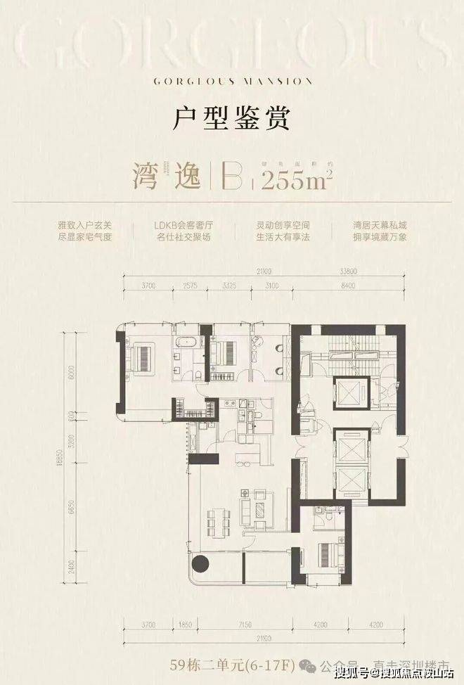 深铁府系精工携手匠心团队,联袂共筑世界湾居新坐标,香槟金搭配高级灰调立面,现代建筑与艺术风格交相辉映,勾勒前海天际美学封面。