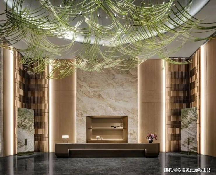 室内空间利用天然大理石、大面积橡木元素、金属等,通过精准的纹理搭配和工艺处理,将都市律动和自然秘境的现代活力和神秘舒适相结合,赋予空间质感和生命力,格栅的运用,增加光影效果的同时也提升居住体验感。