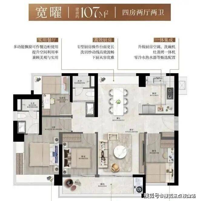 【建筑面积107㎡4房2卫】