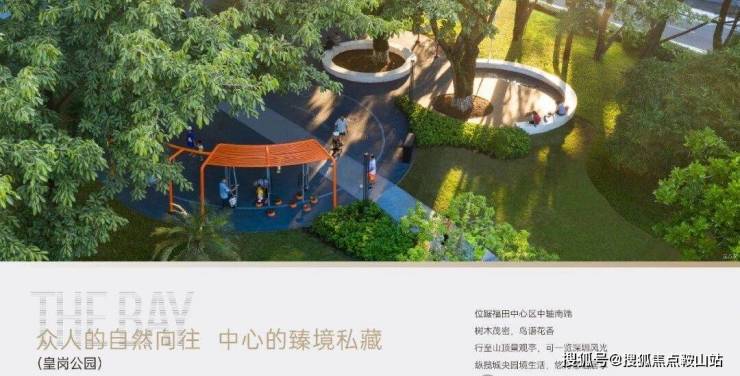位踞福田中心区中轴南侧,树木茂密,鸟语花香。行至山顶景观亭,可一览深圳风光,纵揽城央园境生活,悠诗意栖居享