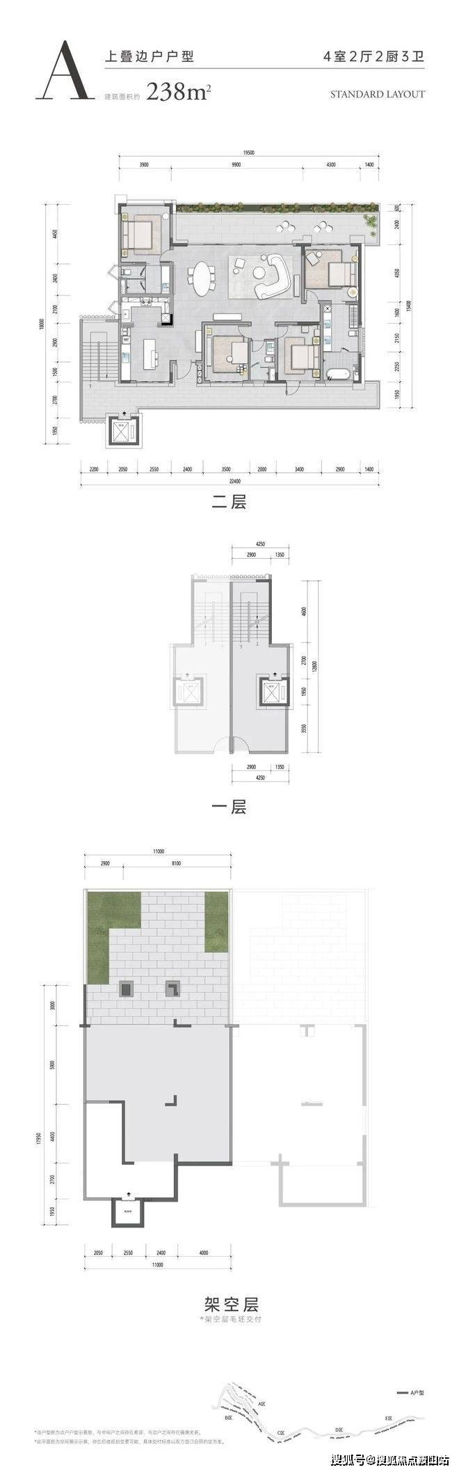 【三期叠拼别墅】面积约245平方米(4房3卫),有室内空间和花园赠送(2025年6月30日交房)