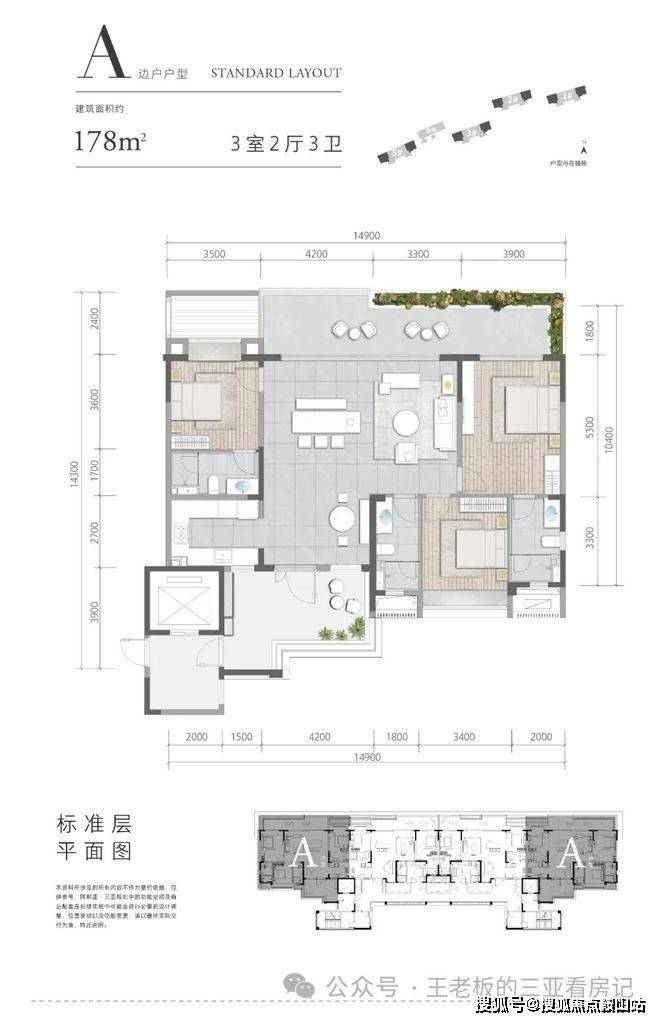 【东区二期大平层】4 栋 9-11 的观景大平层公寓及 1 栋会所,户型约为175平左右的三房三卫。