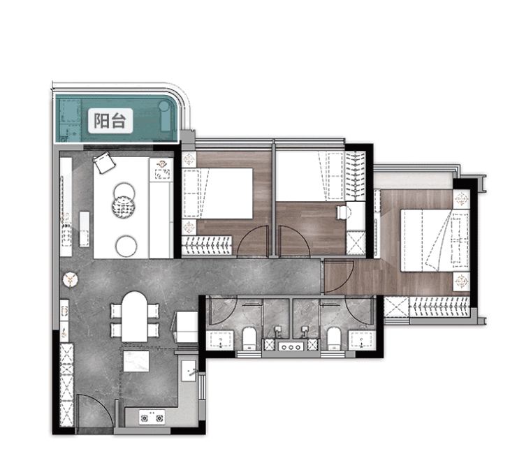 注入客餐厨一体化、超大面宽阳台、与270°主卧落地窗等前卫设计,功能强大。