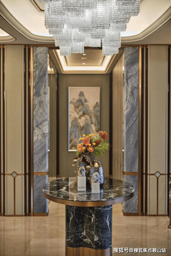 地面香奈儿米黄奢石,背景墙阿玛尼底材刺绣墙艺,营造清雅美学;