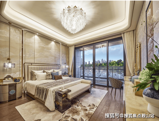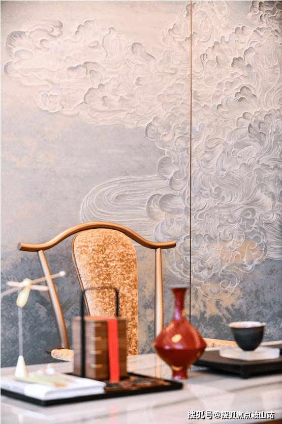 ——全球顶级奢侈品材质视觉盛宴 主卧墙面采取简约设计搭配中式刺绣元素;